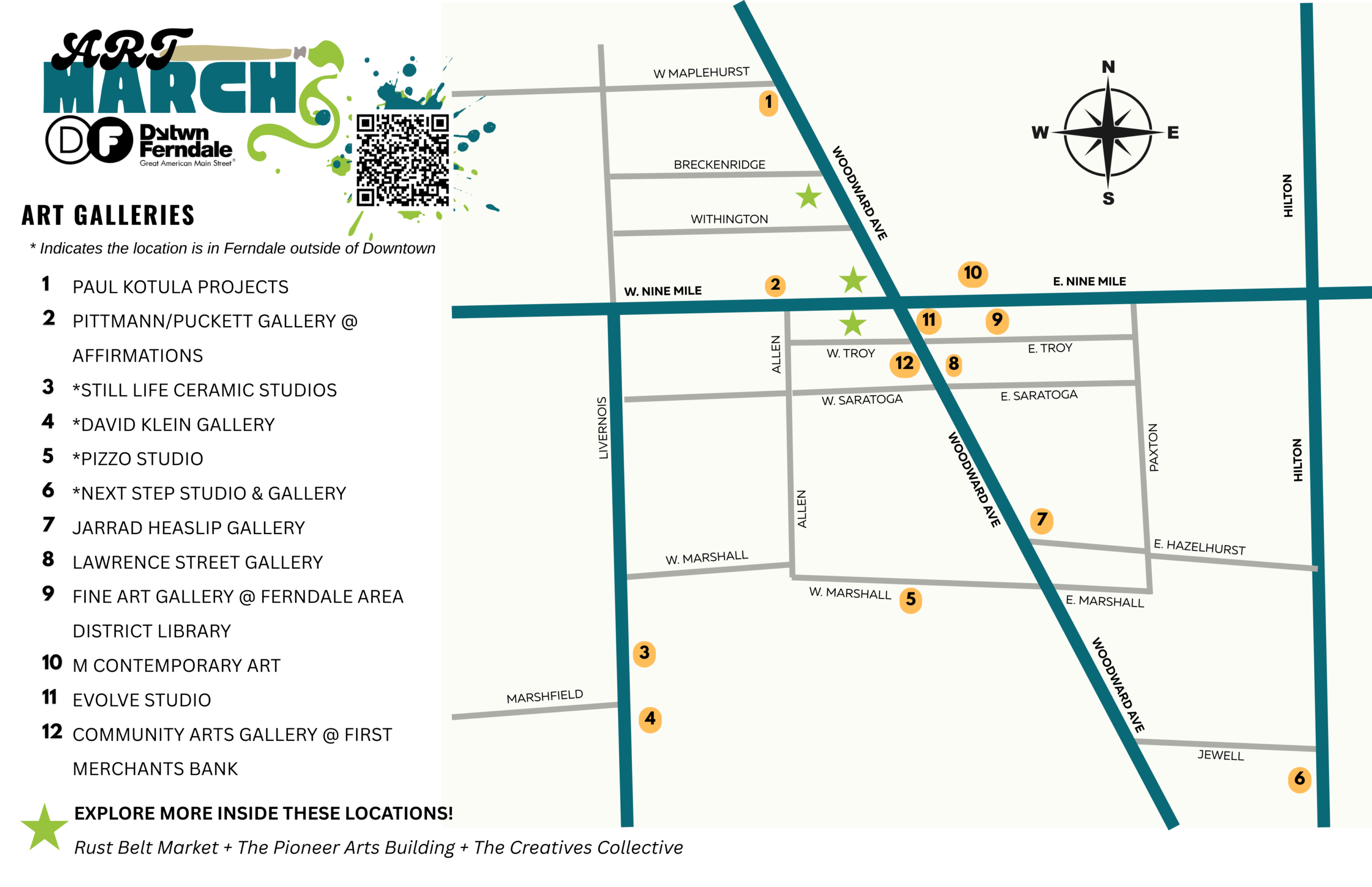 * Indicates the location is in Ferndale outside of Downtown